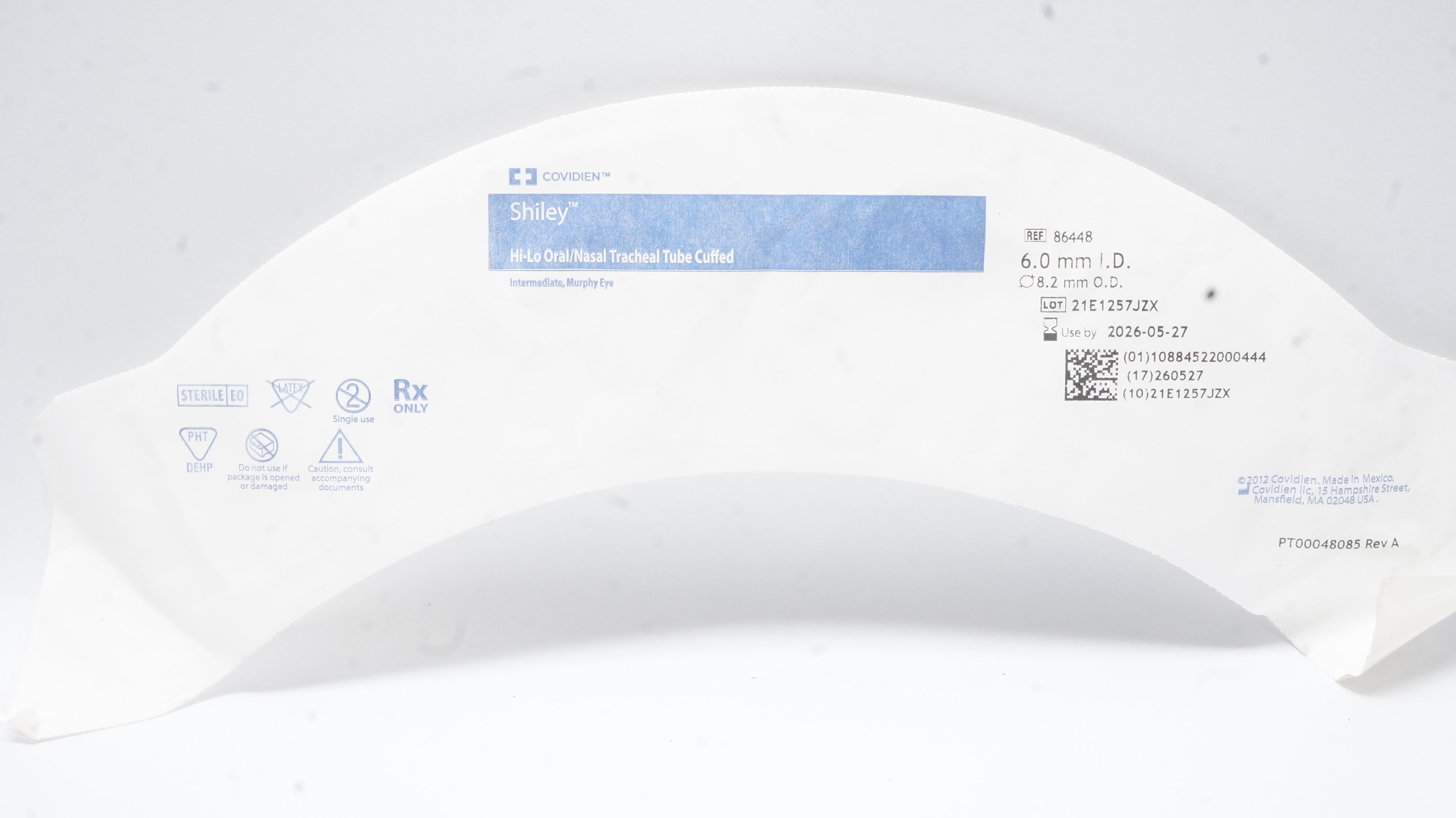 Covidien 86448 Shiley Hi-Lo Oral/Nasal Tracheal Tube Cuffed Intermediate Murphy Eye 6.0mm ID x 8.2mm OD