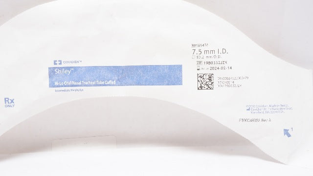 Covidien 86451 Shiley Hi-Lo Oral/Nasal Tracheal Tube Cuffed 7.5ID x 10.2mmOD