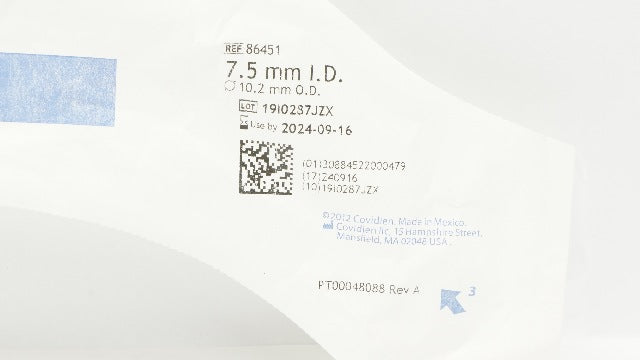 - Covidien 86451 Shiley Hi-Lo Oral/Nasal Tracheal Tube Cuffed 7.5mm x 10.2mm (x)