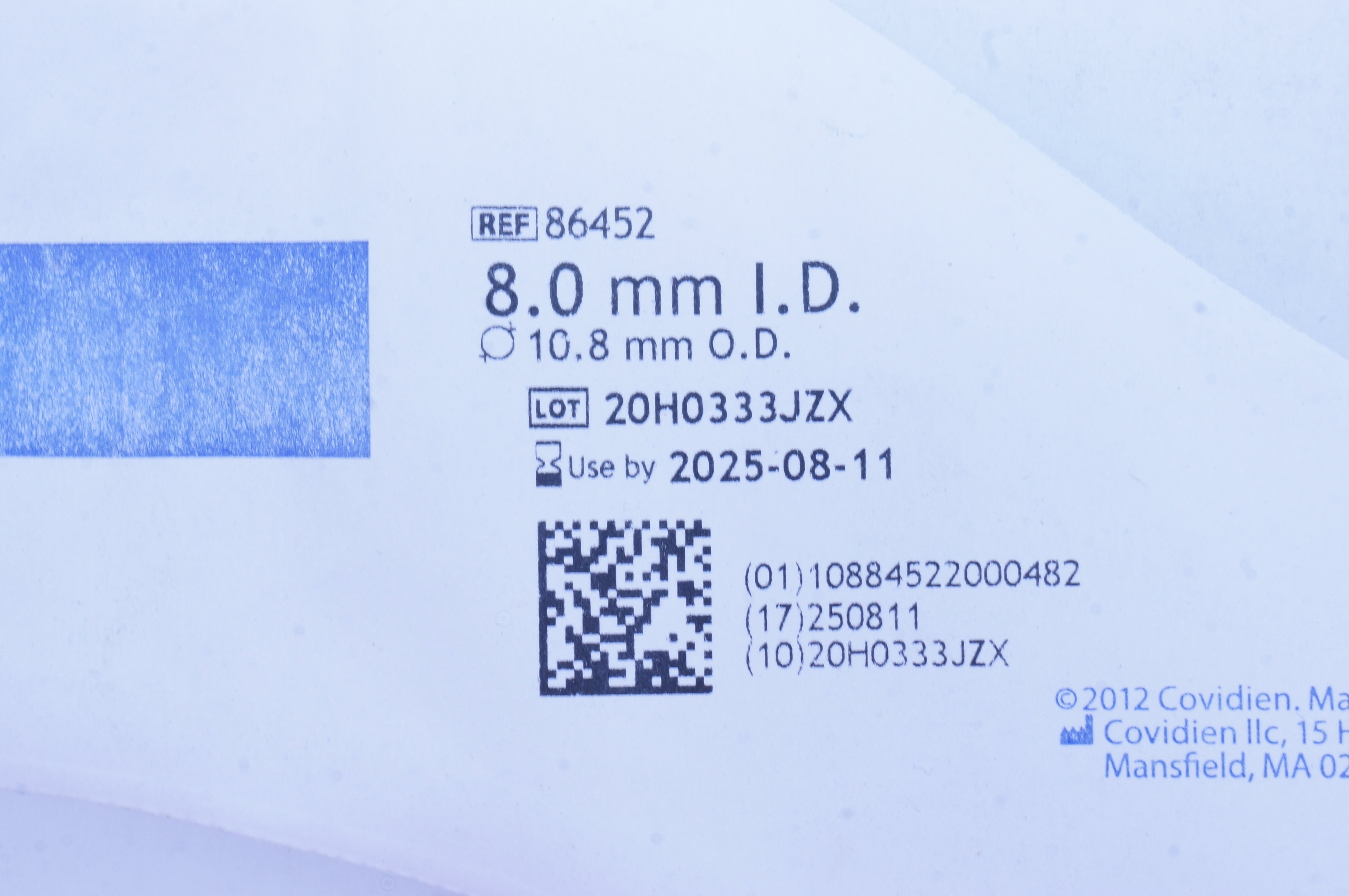 Covidien 86452 Shiley Hi-Lo Oral/Nasal Tracheal Tube Cuffed 8.0mm x 10.8mm