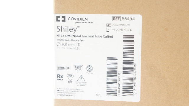Covidien 86454 Shiley Hi-Lo Oral/Nasal Tracheal Tube Cuffed 9.0x12.1mm-Box of100