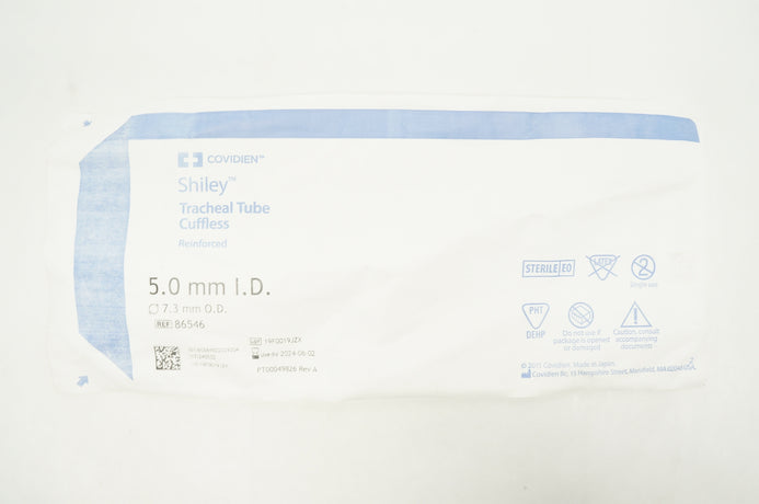 Covidien 86546 Shiley Tracheal Tube Cuffless Reinforced 5.0mm I.D. x 7.3mm O.D.