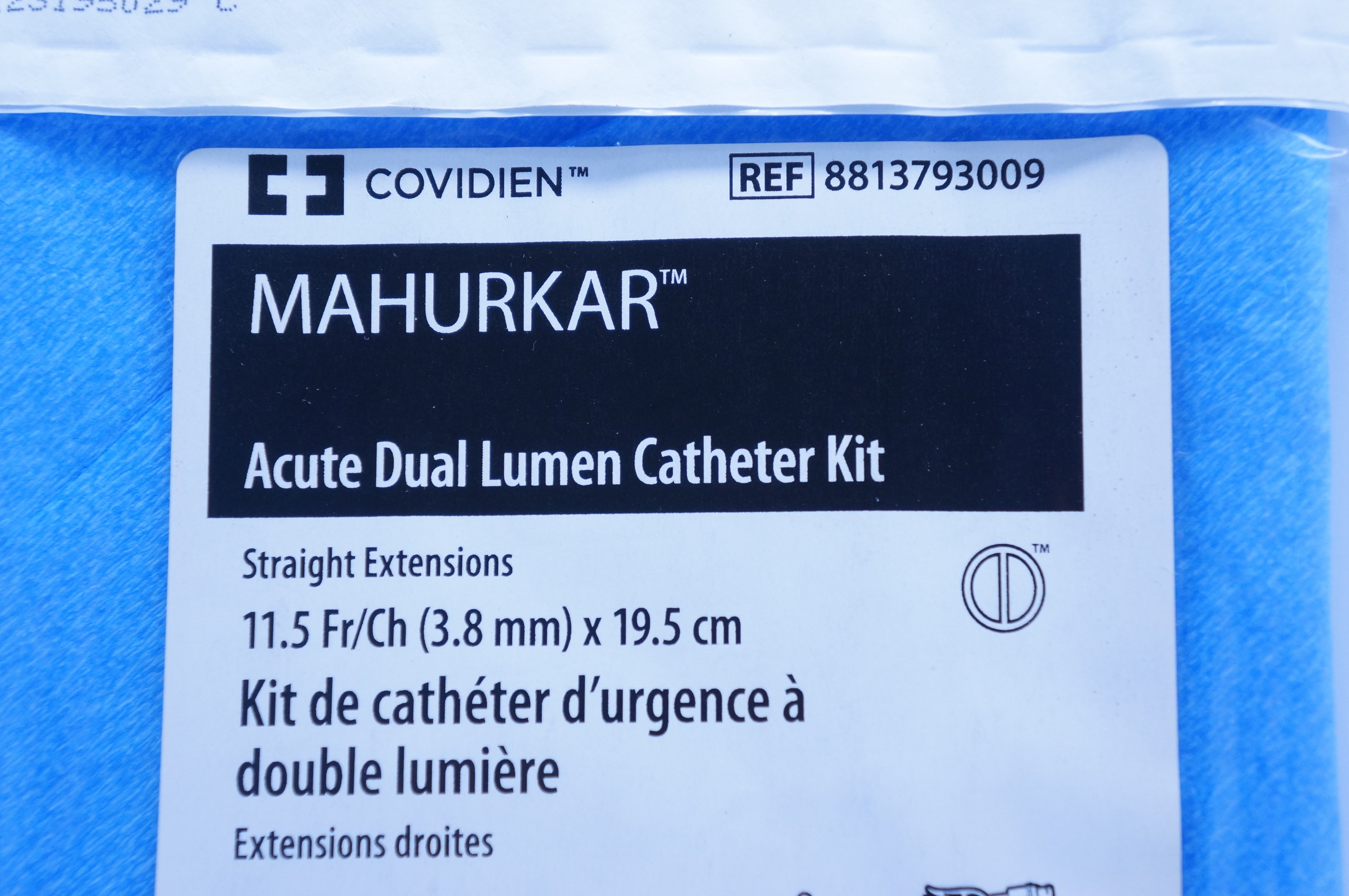 Covidien 8813793009 MAHURKAR Acute Dual Lumen Catheter Kit Straight Extensions 11.5Fr x 19.5cm