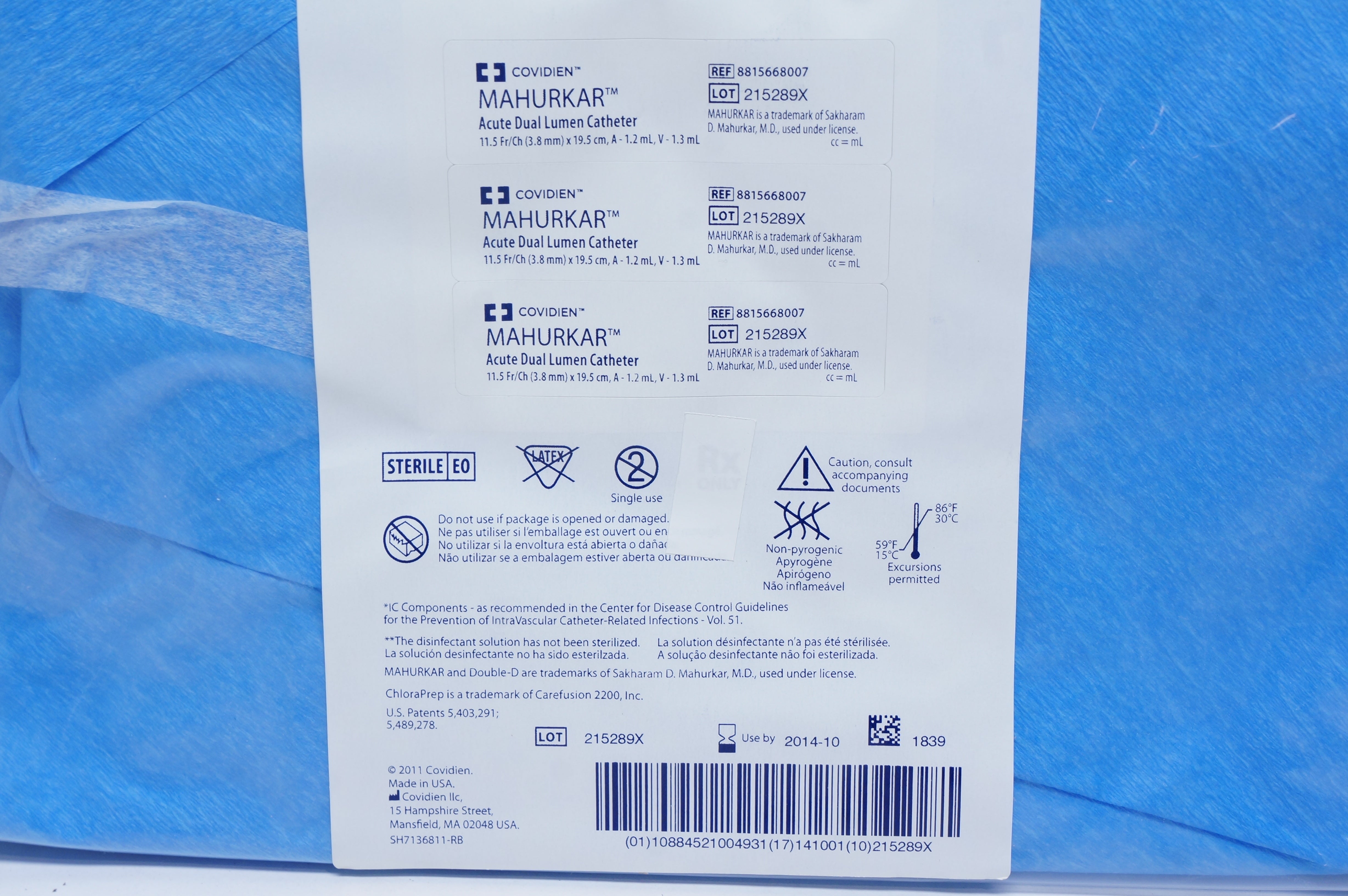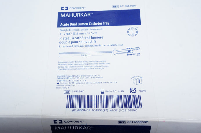 Covidien 8815668007 MAHURKAR Acute Dual Lumen Catheter Tray 11.5Fr x 19.5cm