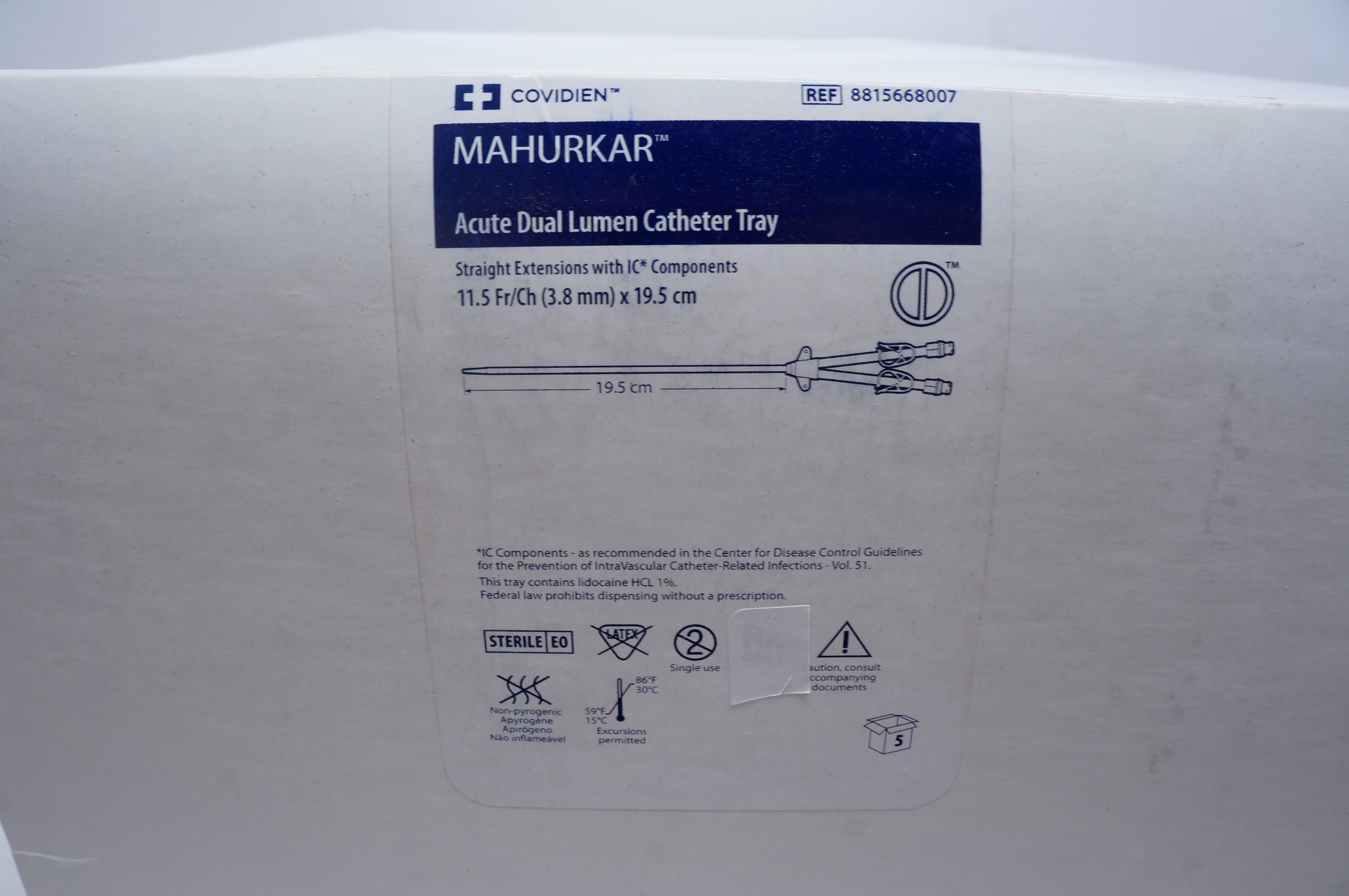 Covidien 8815668007 MAHURKAR Acute Dual Lumen Cath. 11.5Frx19.5cm (x) - Box of 5
