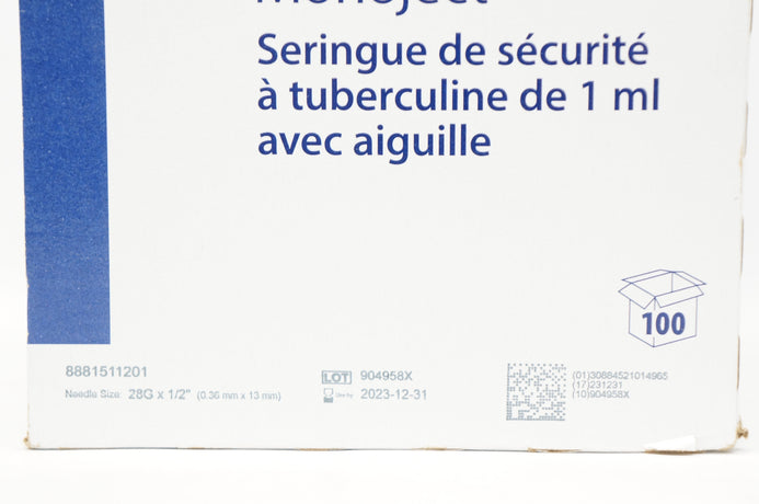- Covidien 8881511201 Monoject 1ml Tuberculin Safety Syringe - Box of 100