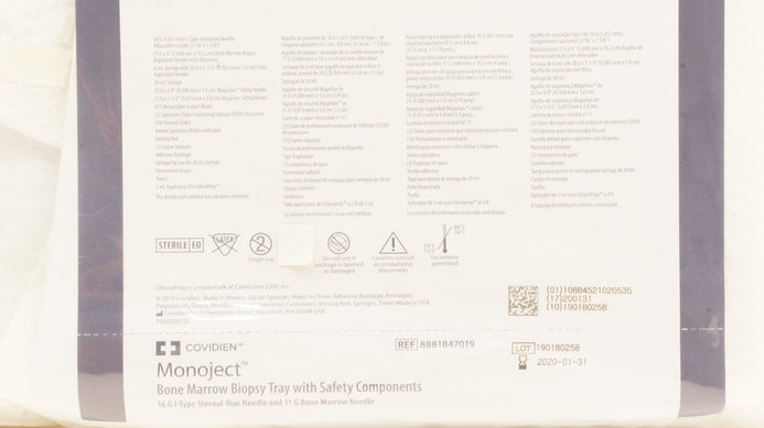 Covidien 8881847019 Monoject Bone Marrow Biopsy Tray with Safety Components (x)
