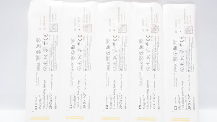 Covidien 8881892910 Magellan 1 mL Insulin Safety Syringe 29G x 1/2inch -Lot of 5