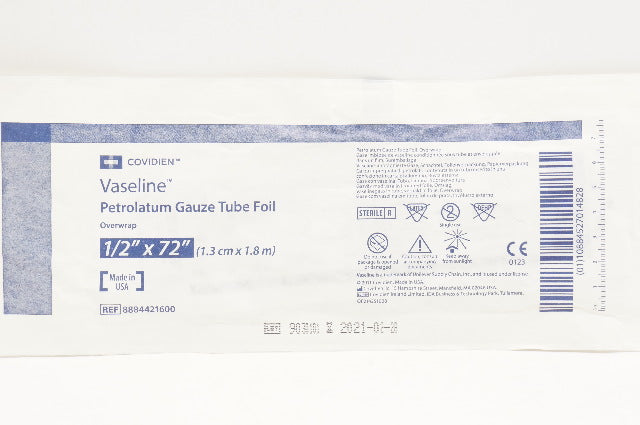 Covidien 8884421600 Vaseline Petrolatum Gauze Tube Foil Overwrap 1/2 inch x 72 inch