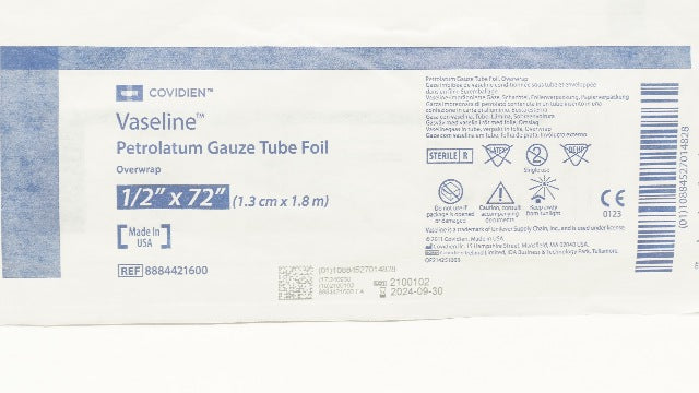 - Covidien 8884421600 Vaseline Petrolatum Gauze Tube Foil 1/2inch x 72inch (x)