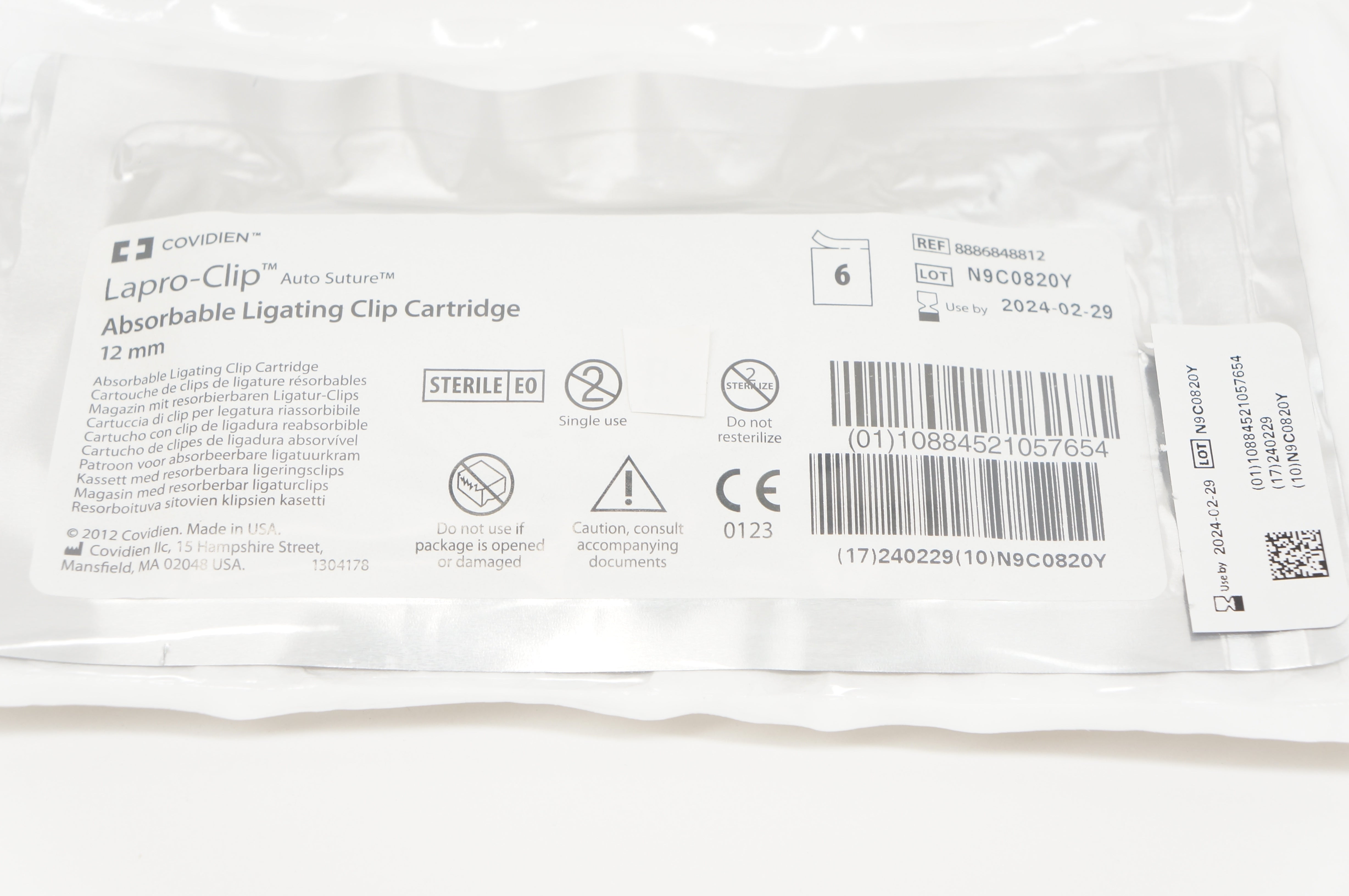 Covidien 8886848812 Lapro-Clip Absorbable Ligating Clip Cartridge 12mm