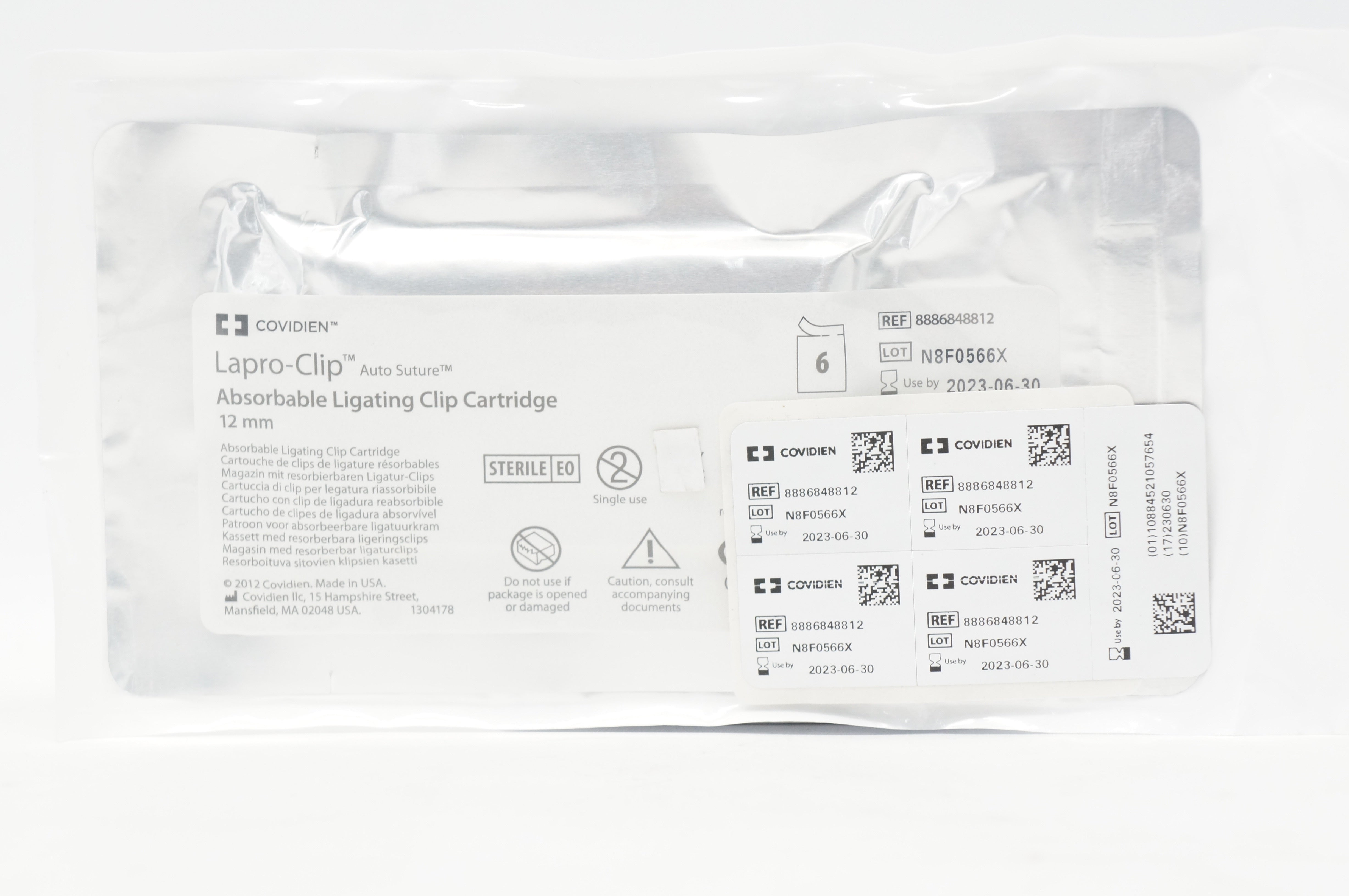 Covidien 8886848812 Lapro-Clip Absorbable Ligating Clip Cartridge 12mm-Pack of 6