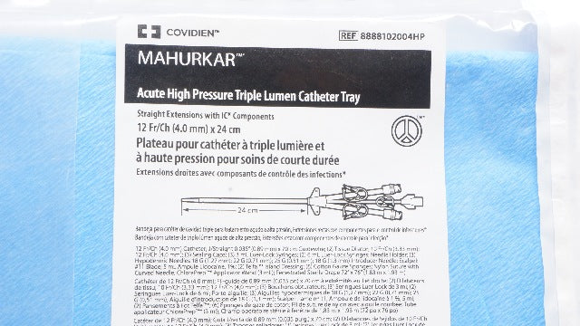 Covidien 8888102004HP MAHURKAR Acute Triple Lumen Catheter Tray 12Fr/Ch x 24cm