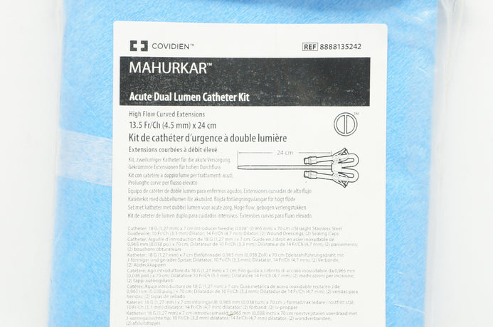 - Covidien 8888135242 MAHURKAR Acute Dual Lumen Catheter Tray 13.5Fr x 24cm (x)