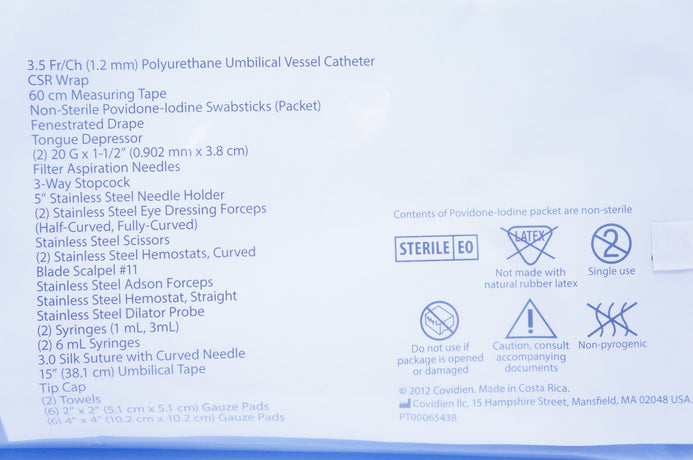 Covidien 8888160424 Argyle Polyurethane Umbilical Vessel Catheter Insertion Tray 3.5Fr/Ch (1.2mm)