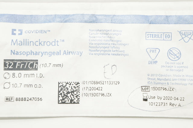 - Covidien 8888247056 Mallinckrodt Nasopharyngeal Airway 32Fr 8.0mm x 10.7mm (x)