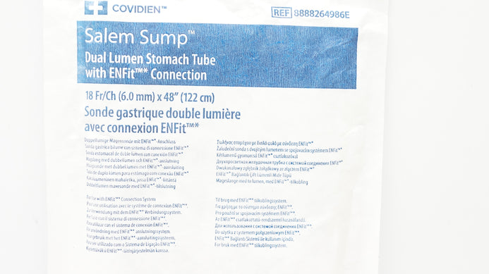 Covidien 8888264986E Salem Sump Dual Lumen Stomach Tube with ENFIT Connection 18Fr/Ch x 48inch