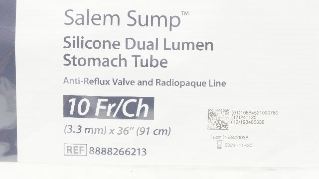 - Covidien 8888266213 Salem Sump Silicone Dual Lumen Stomach Tube 10Fr/Ch (x)