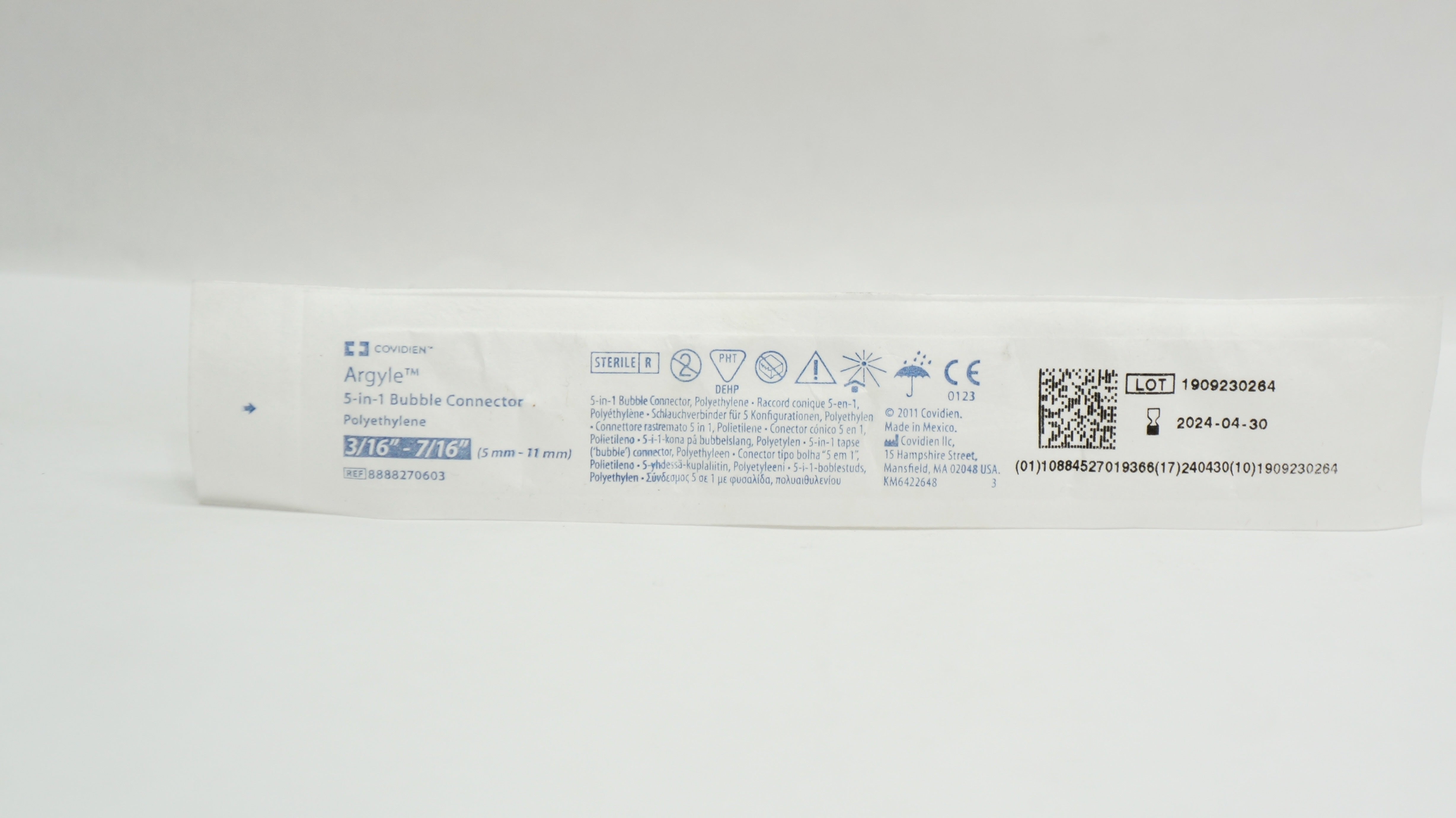 - Covidien 8888270603 Argyle 5-in-1 Bubble Connector,Polyethylene 3/16 x 7/16in(x)