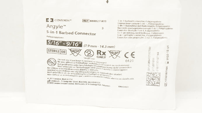 - Covidien 8888271411 Argyle 5in-1 Barbed Connector 5/16In x 9/16In (x)