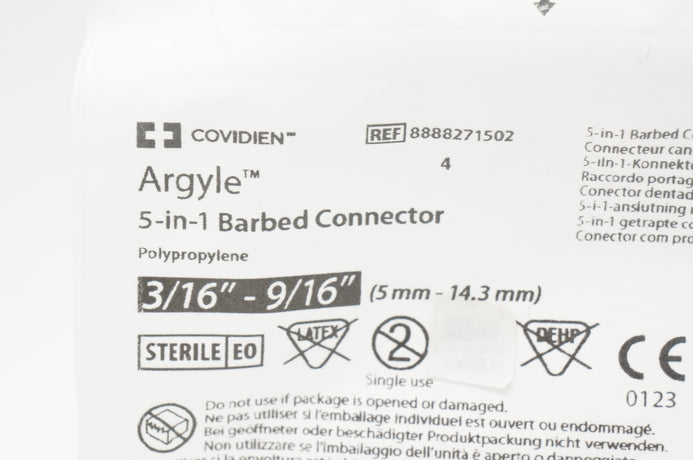 Covidien 8888271502 Argyle 5-in-1 Barbed Connector 3/16 inch x 9/16 inch