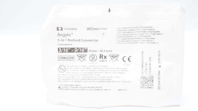 Covidien 8888271502 Argyle 5-in-1 Barbed Connector 3/16 inch x 9/16 inch