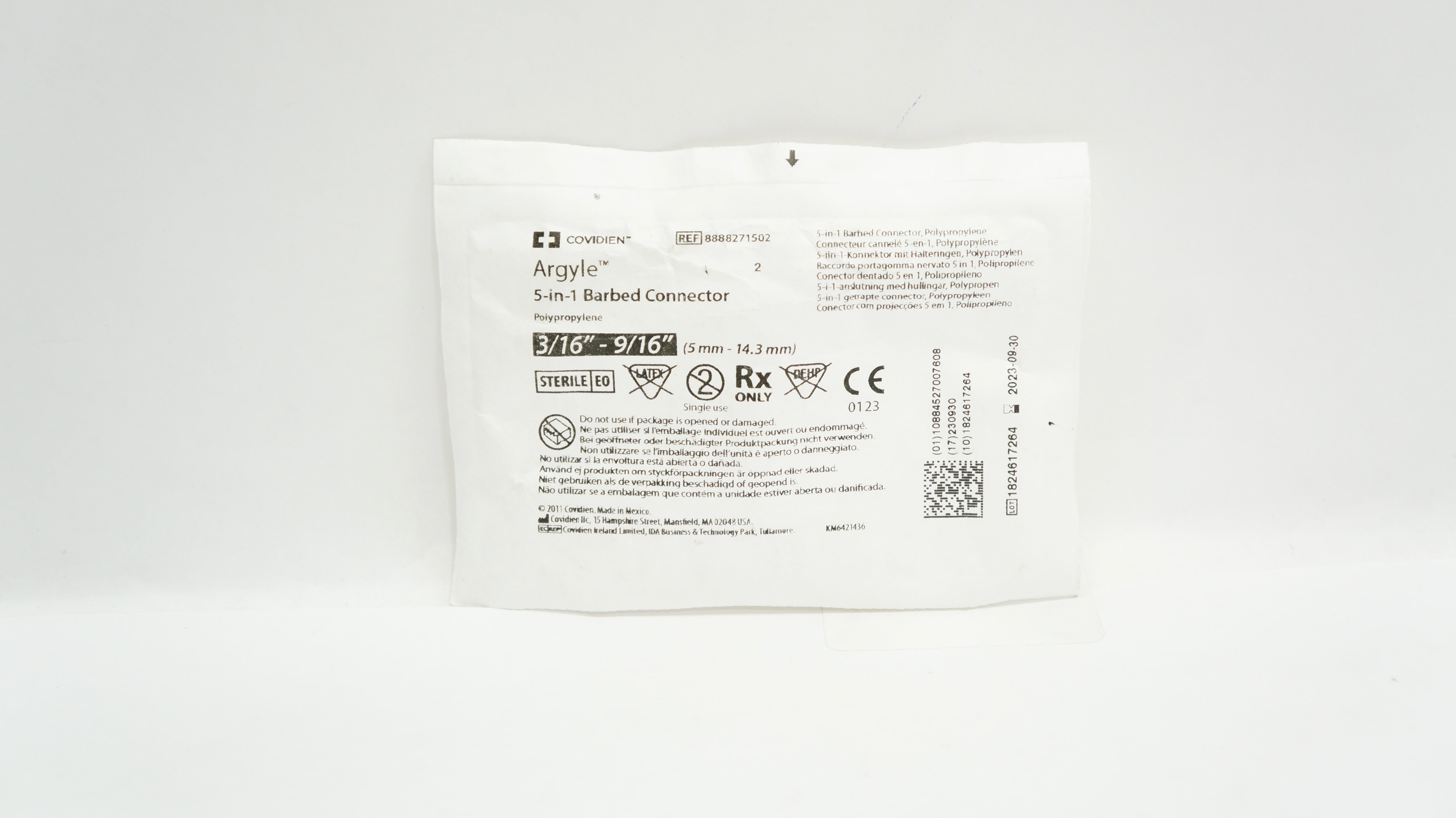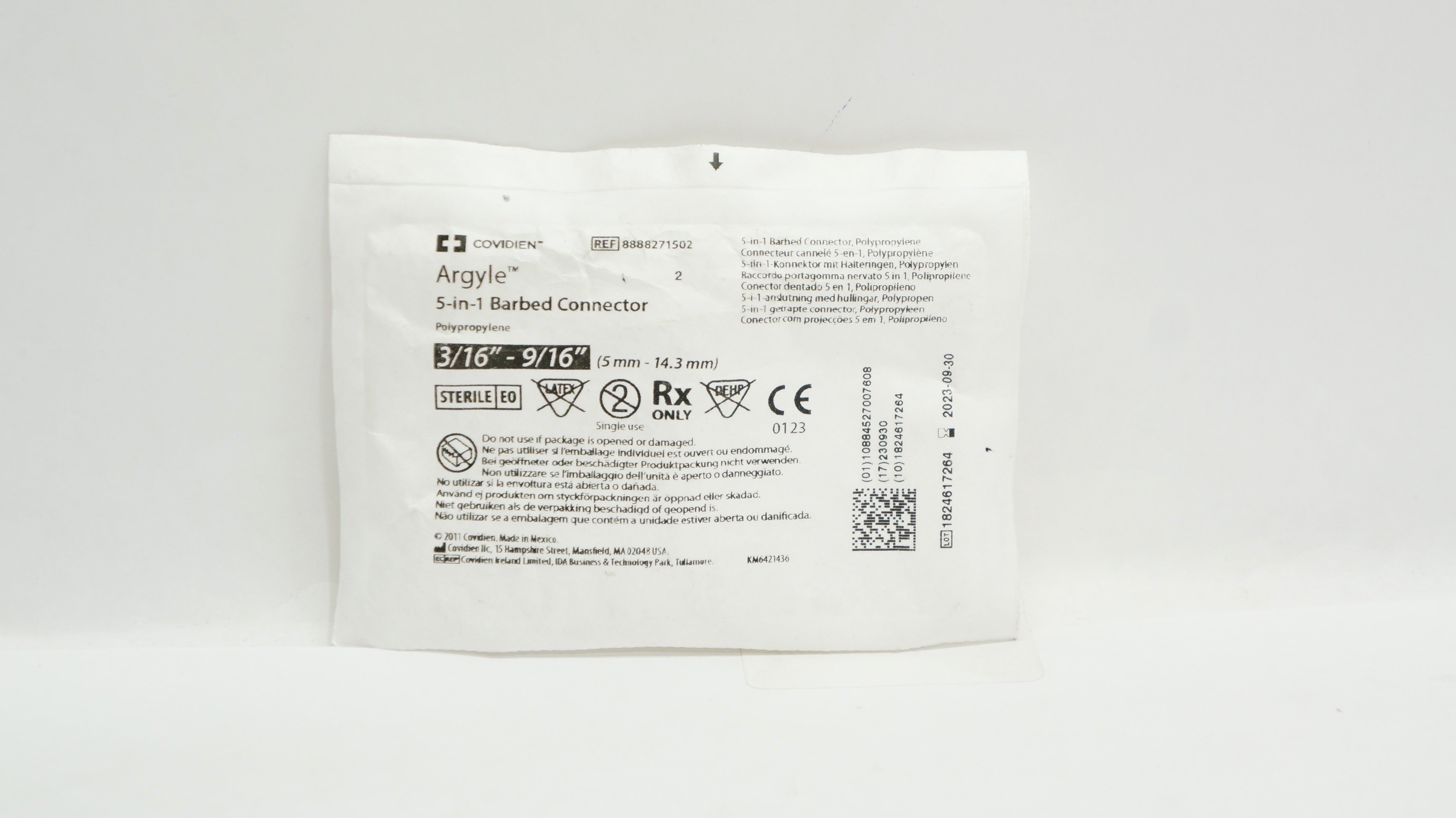 - Covidien 8888271502 Argyle 5-in-1 Barbed Connector 3/16 inch x 9/16 inch (x)