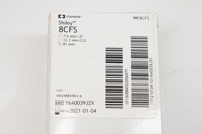 - Covidien 8CFS Shiley Tracheostomy Tube Cuffless with Inner Cannula 7.6mm ID