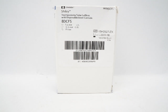 - Covidien 8DCFS Shiley Tracheostomy Tube Cuffless 7.6 ID x 12.2 OD x 79mm (x)