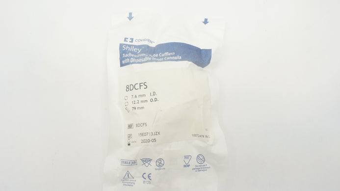 - Covidien 8DCFS Shiley Tracheostomy Tube Cuffless 7.6mm x 12.2mm x 79mm (x)