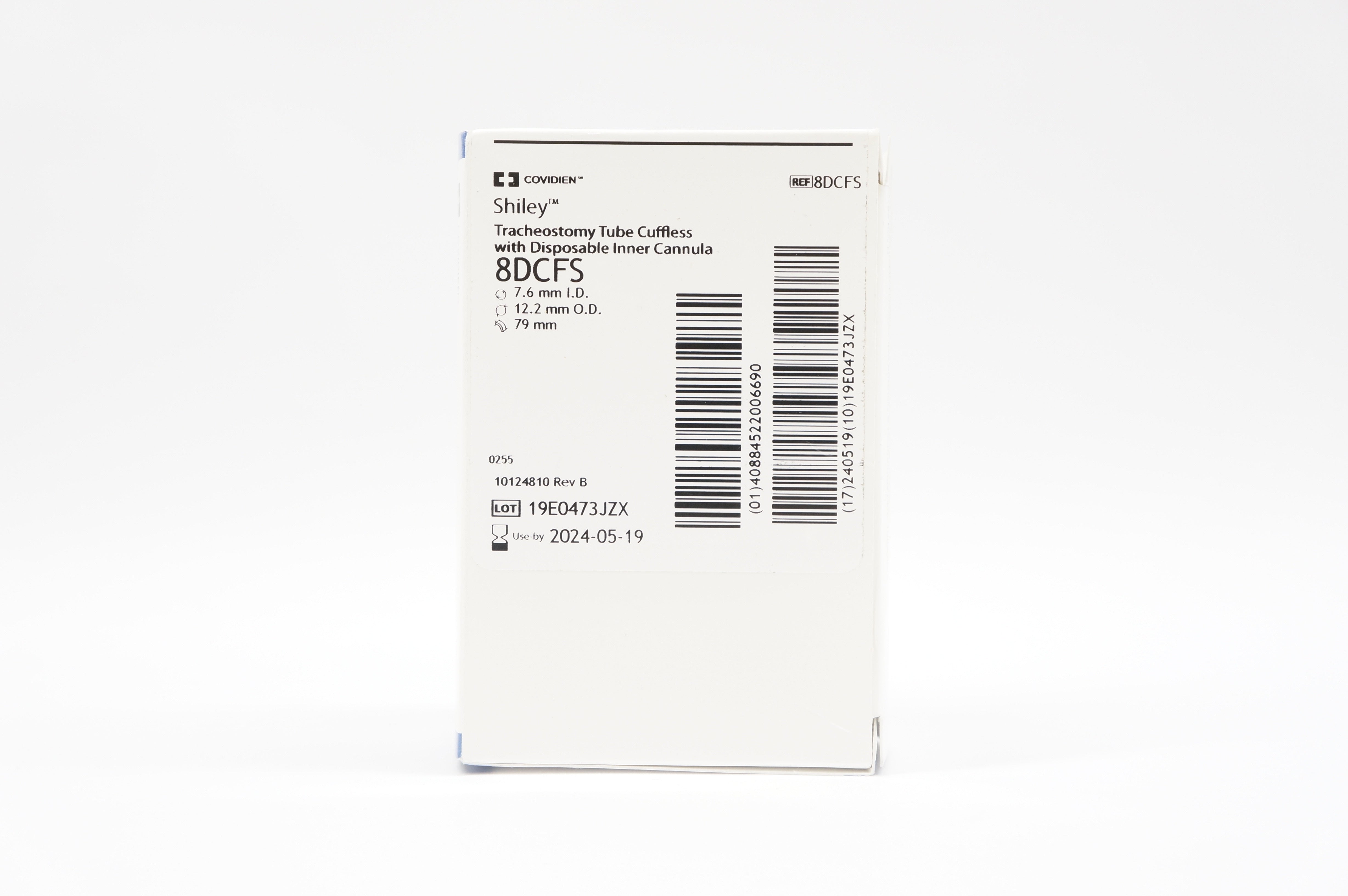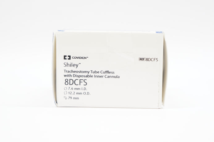 - Covidien 8DCFS Shiley Tracheostomy Tube Cuffless W/ Inner Cannula 7.6mm ID