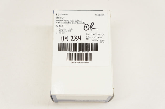 - Covidien 8DCFS Shiley Tracheostomy Tube Cuffless W/ Inner Cannula 7.6mm ID (x)