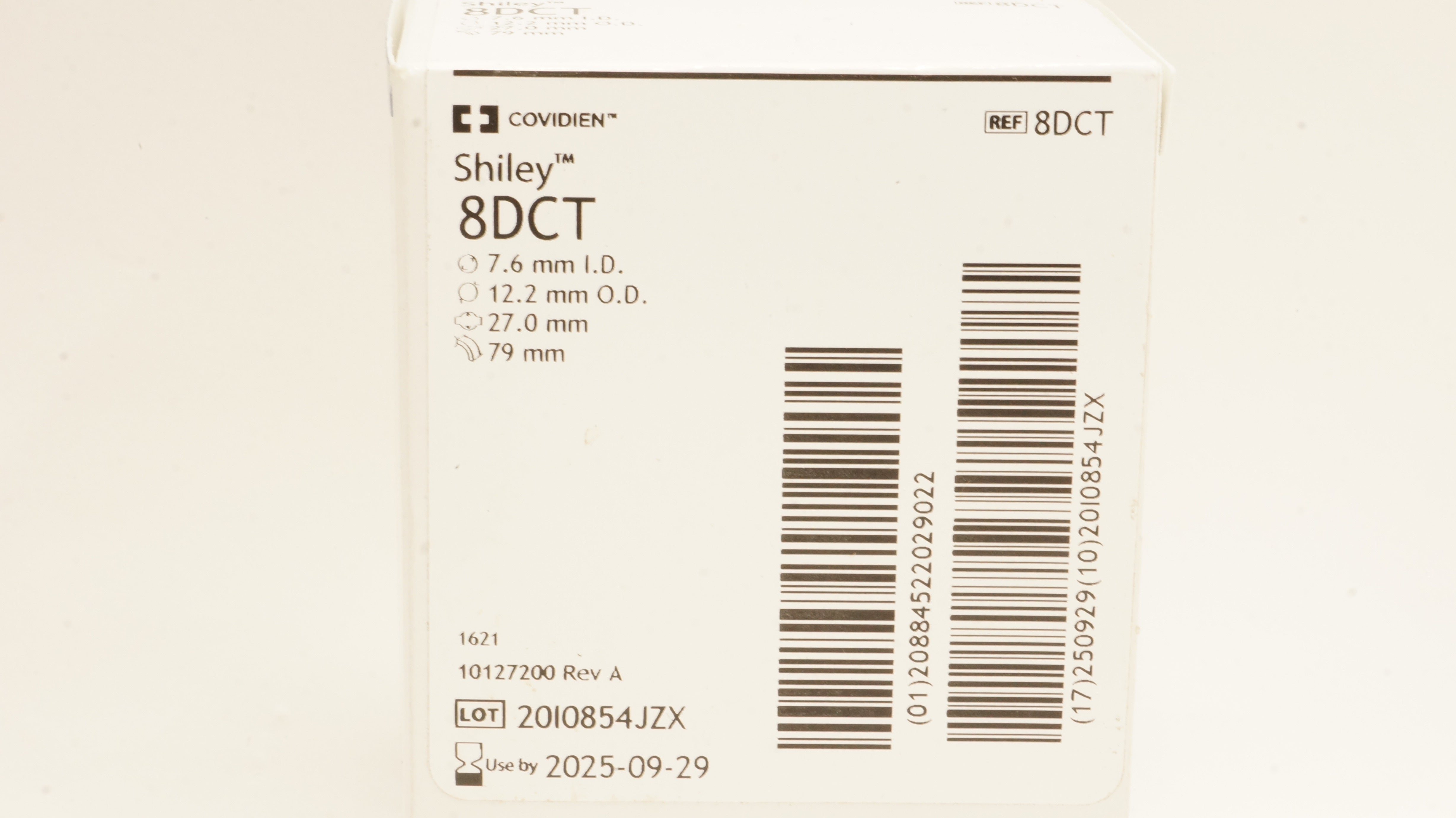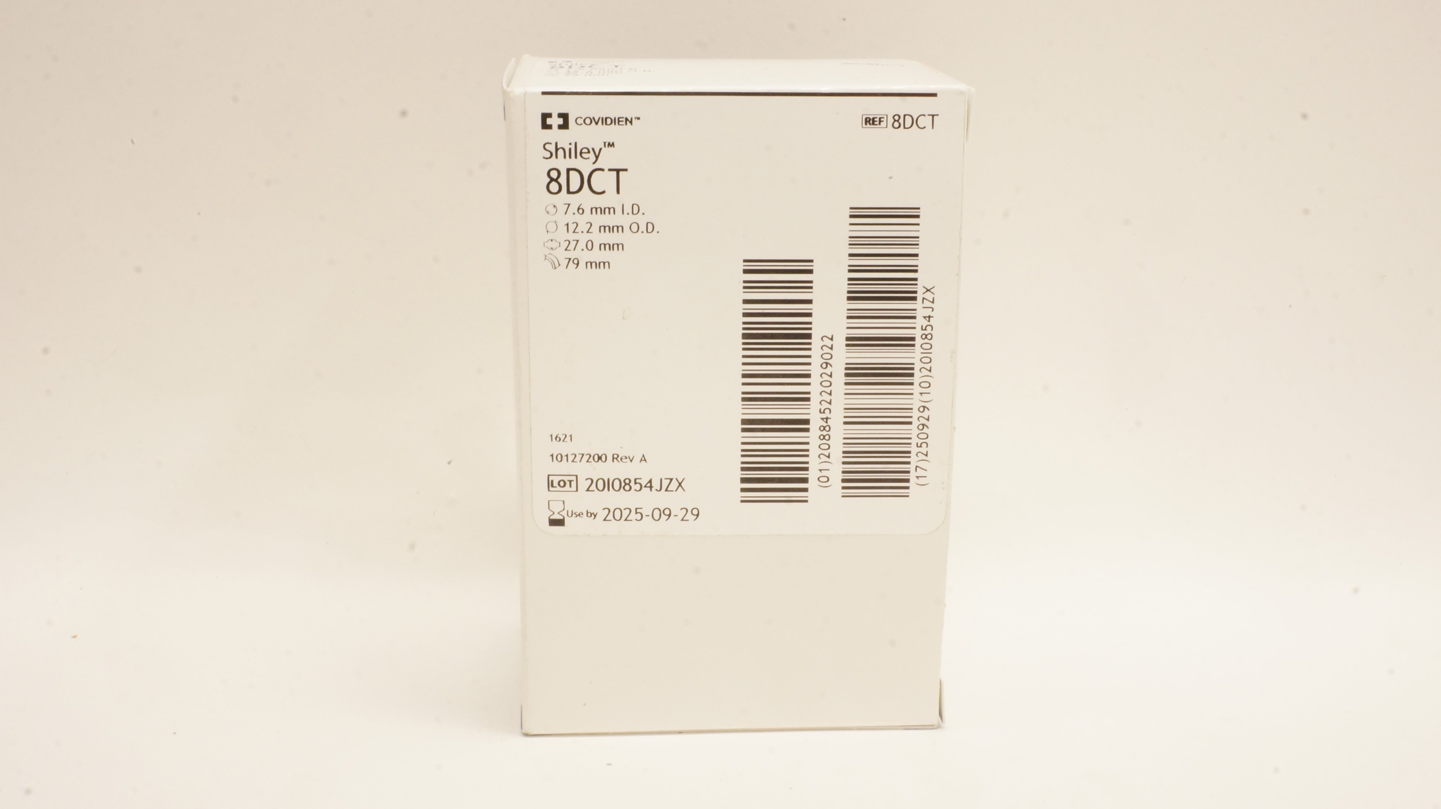 - Covidien 8DCT Shiley Tracheostomy Tube Cuffed 7.6 ID x 12.2 OD x 27.0mm x 79mm