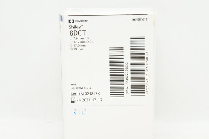 - Covidien 8DCT Shiley Tracheostomy Tube Cuffed 7.6ID x 12.2OD x 27.0 x 79mm (x)