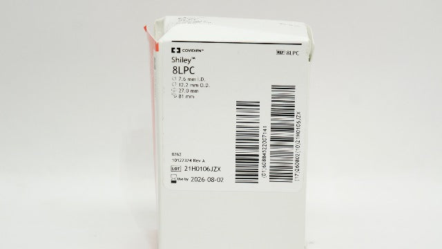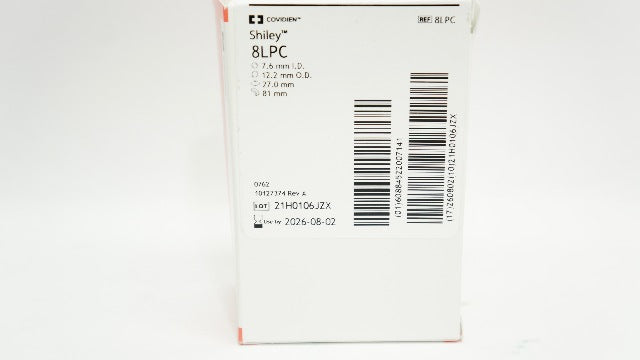 - Covidien 8LPC Shiley Tracheostomy Tube Cuffed 7.6 ID x 12.2 OD x 27 x 81mm