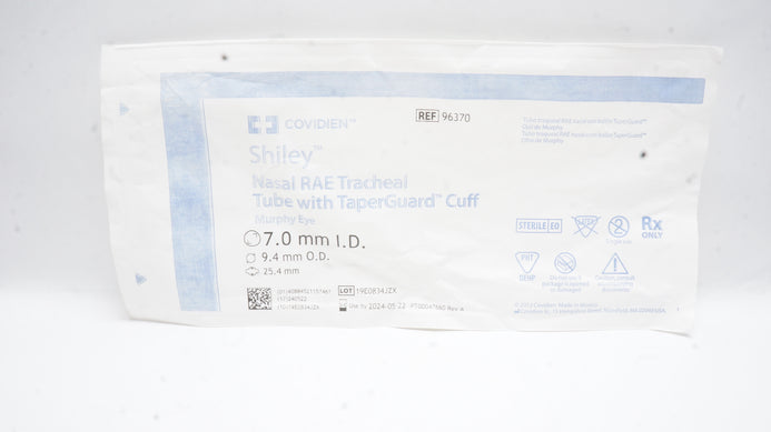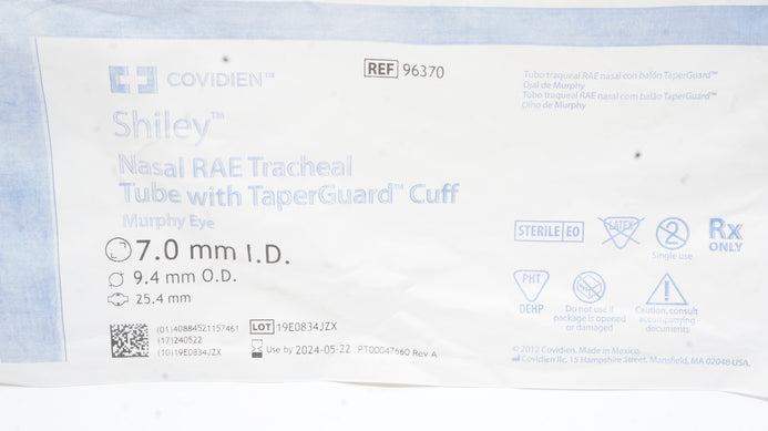 Covidien 96370 Shiley Nasal RAE Tracheal Tube With TaperGuard Cuff 7.0mm ID x 9.4mm OD x25.4mm