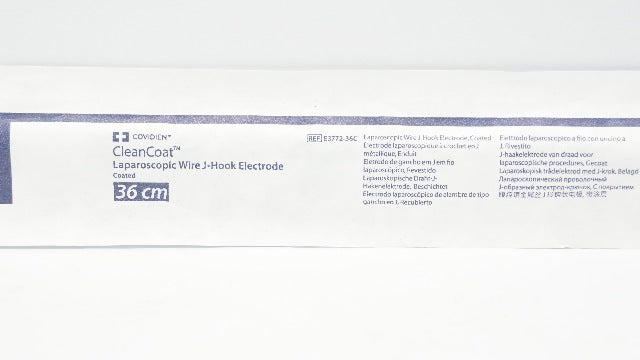- Covidien E3772-36C CleanCoat Laparoscopic Wire J-Hook Electrode 36cm