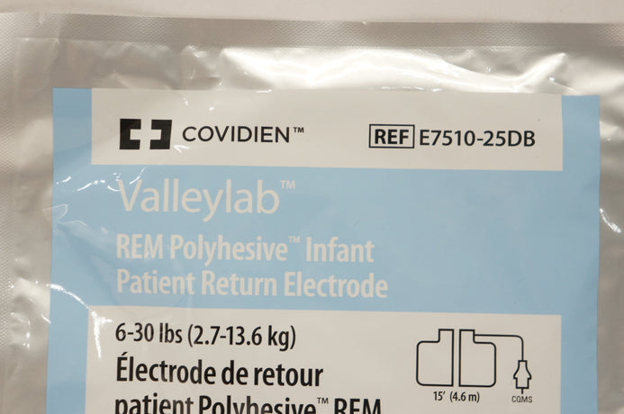 Covidien E7510-25DB Valleylab REM Polyhesive Infant Patient Return Electrode 6-30lbs 15in