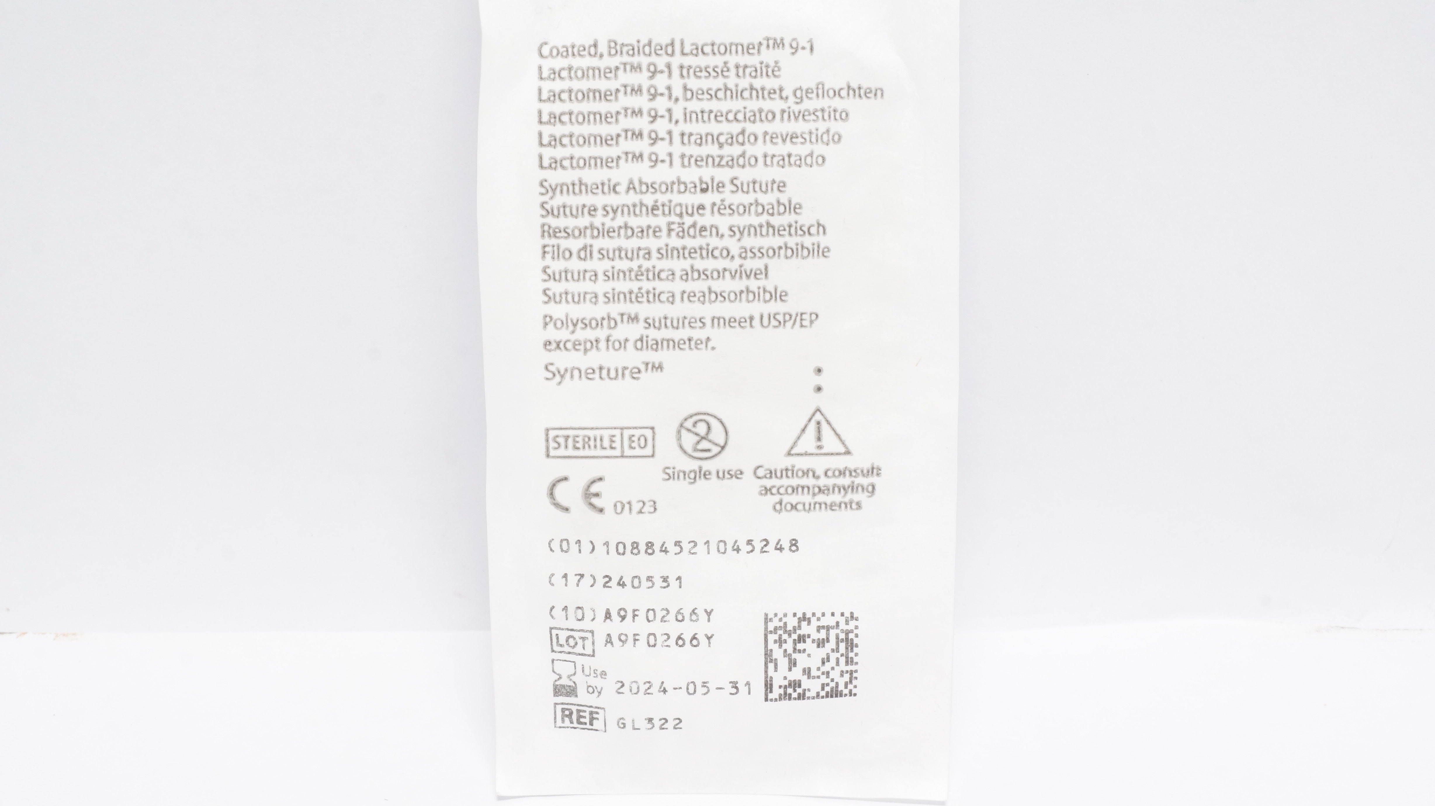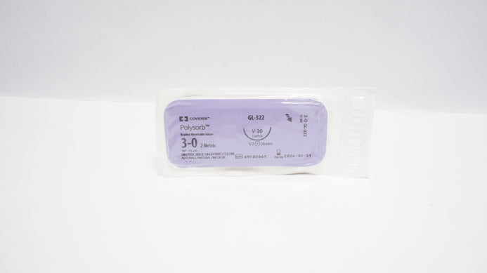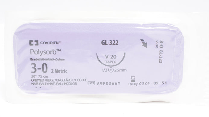 Covidien GL-322 3-0 Polysorb Braided Stre. 30inch, V-20 26mm T1/2 Taper (x)
