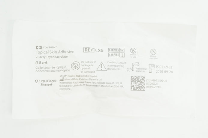 - Covidien LX6 Topical Skin Adhesive 2 Octyl Cyanoacrylate 0.8ml (x)