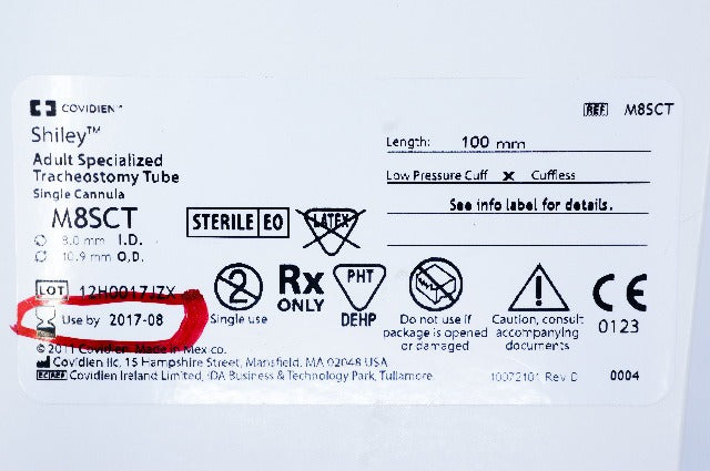 - Covidien M8SCT Shiley Adult Specialized Tracheostomy Tube 8mm x 10.9mm (x)