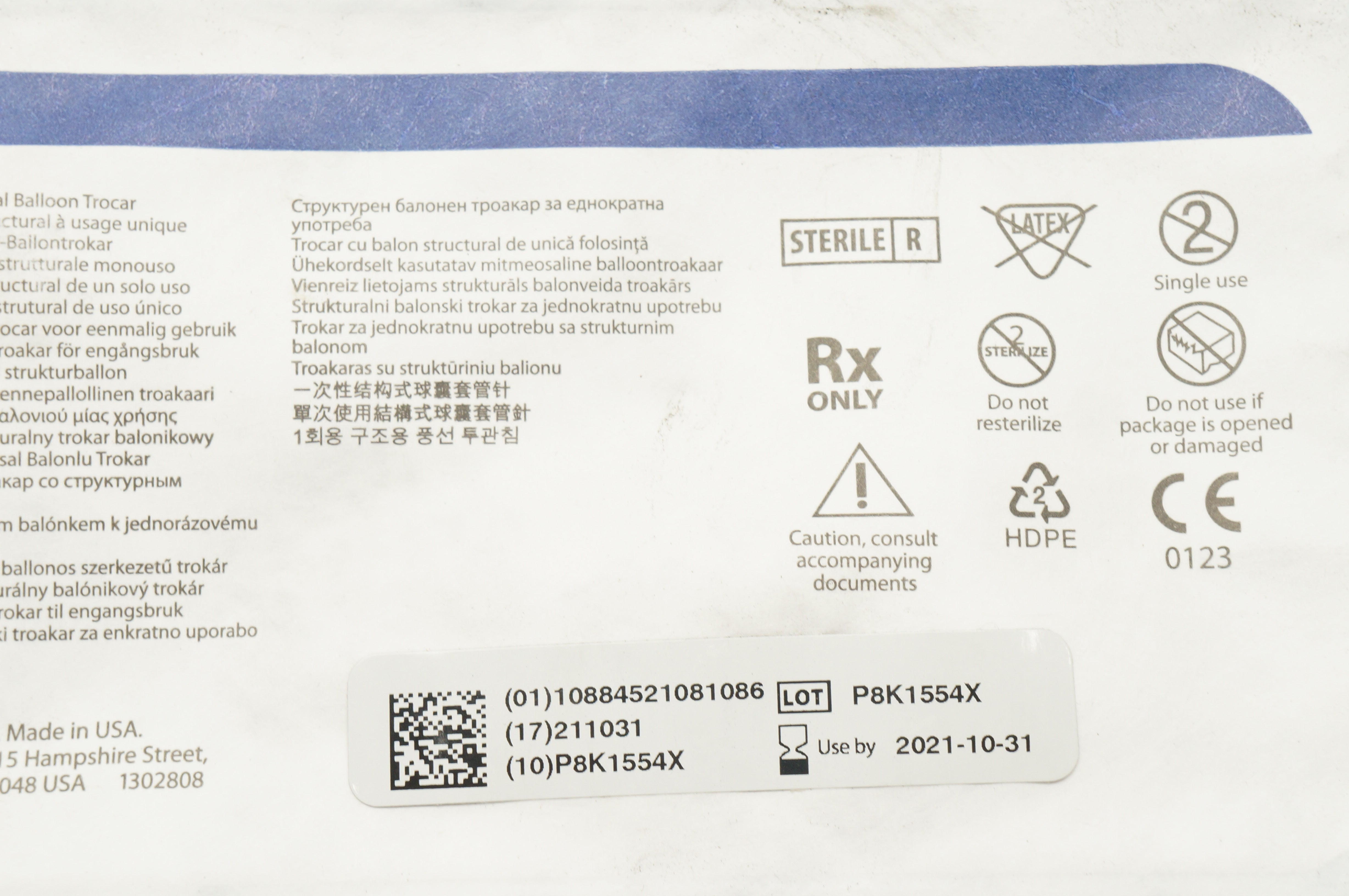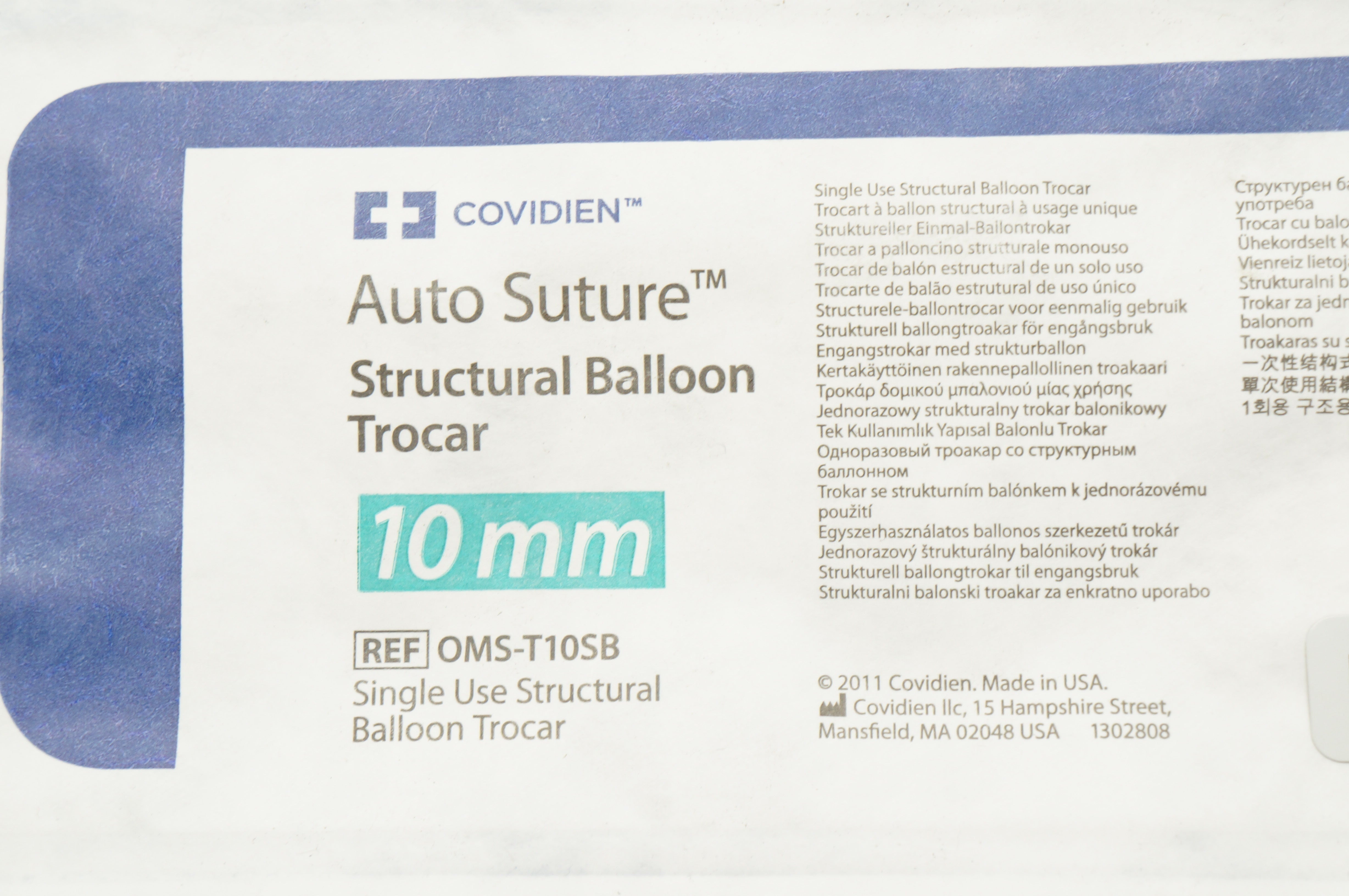 - Covidien OMS-T10SB Auto Suture Structural Balloon Trocar 10mm