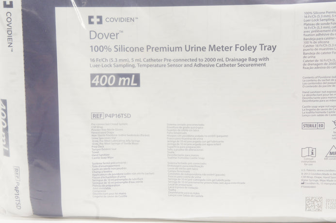- Covidien P4P16TSD Dover 100% Silicone Premium Urinen Meter Foley Tray 400ml