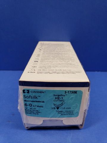 - Covidien S-1750K 6-0 Sofsilk, Surgalloy, HE-1 Cutting, 3/8 11mm, 18in. (x) ~ Box of 12
