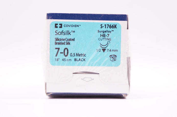 - Covidien S-1766K 7-0 Sofsilk, Silicone Coated Brdd Silk, HE-7 18in.(x) Box of 12