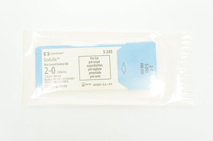 - Covidien S-245 2-0 Sofsilk Wax Coated Braided Silk, 12 x 24inch