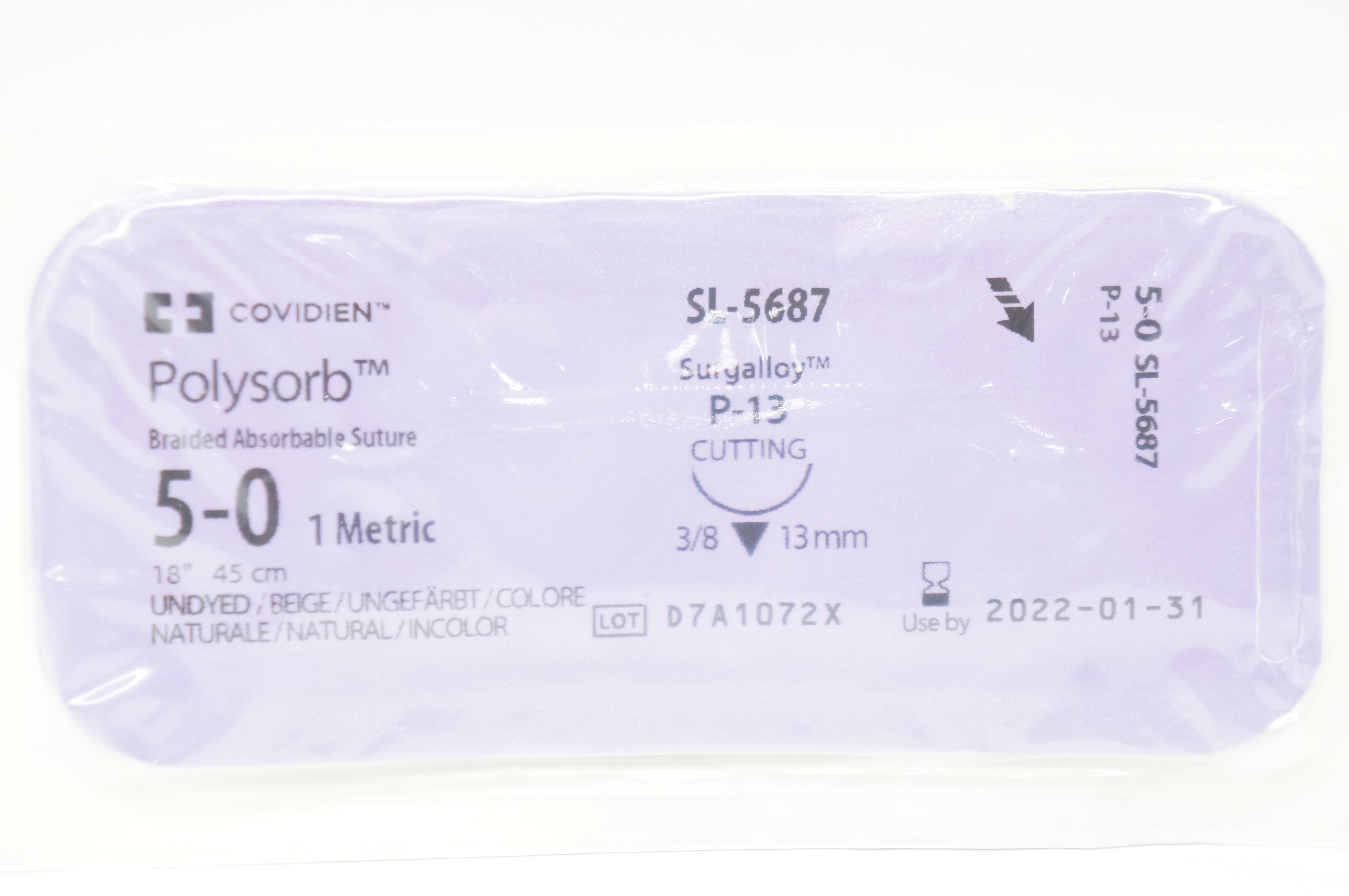 Covidien SL-5687 5-0 POLYSORB Absorbable Stre P-13 Cutting 3/8c 13mm, 18inch