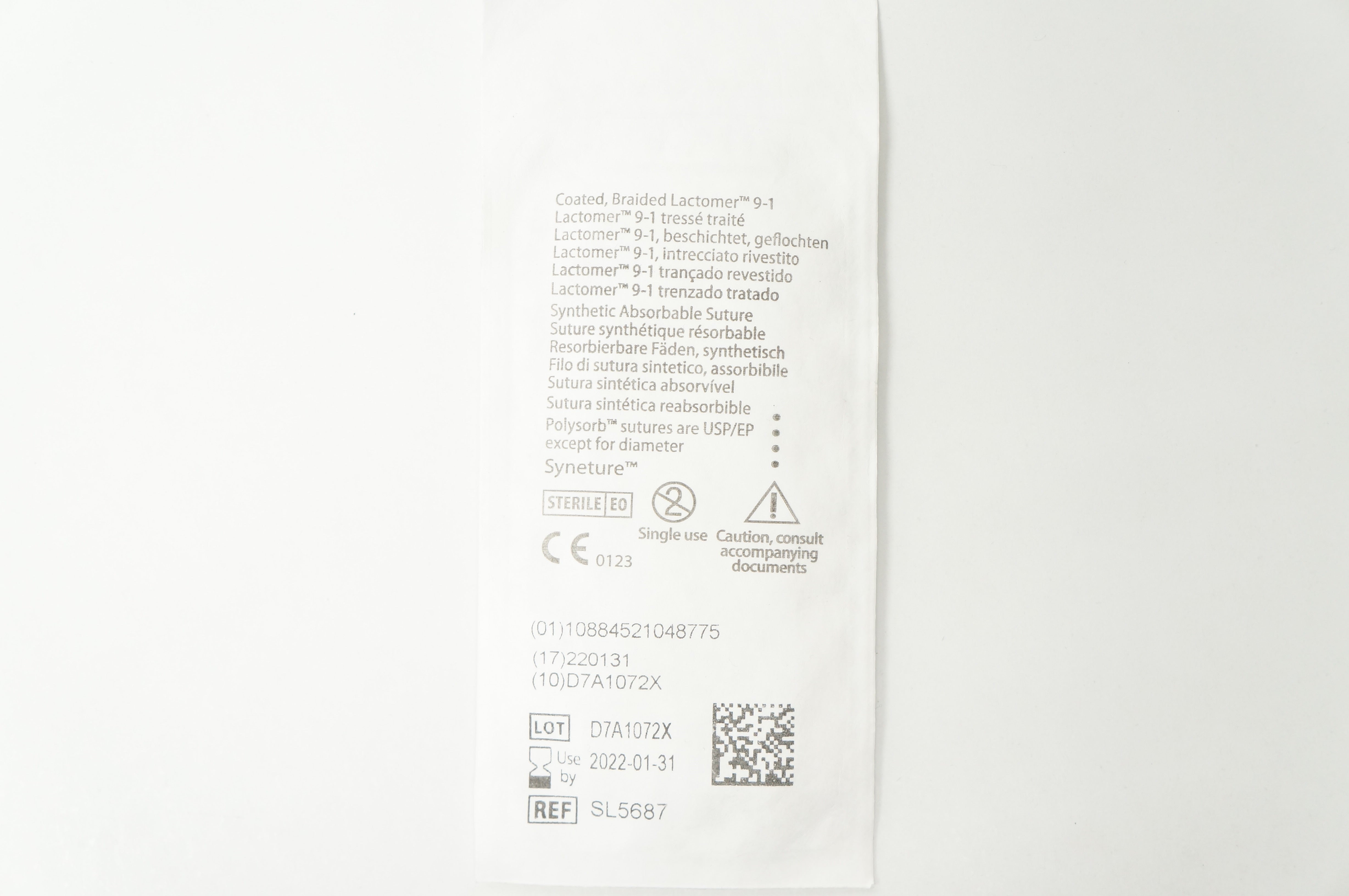 Covidien SL-5687 5-0 POLYSORB Braided Absorbable Suture P-13 Cutting 3/8c 13mm, 18inch