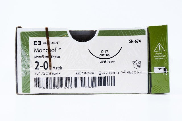 Covidien SN-674 2-0 Monosof, C-17, 3/8 39mm, 30inch