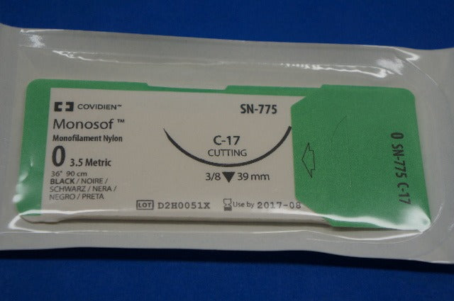 Covidien SN-775 Monosof, C-17 39mm 3/8 Cutting, Monofilament Nylon, 36", Size 0